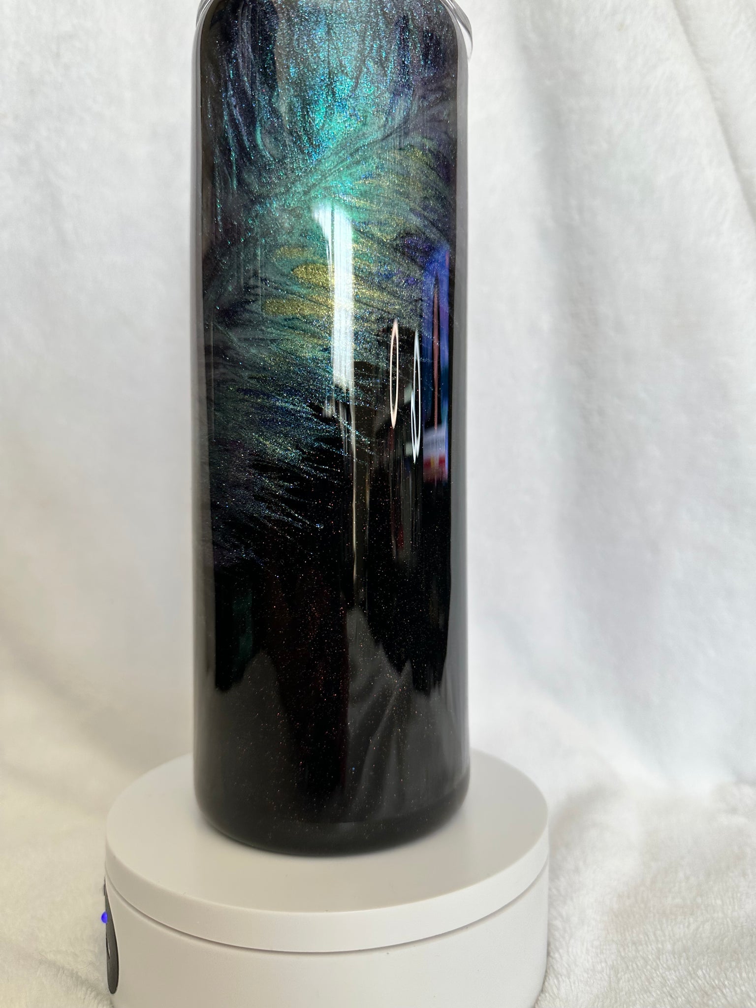 Black base with mica, mica pulled feather.