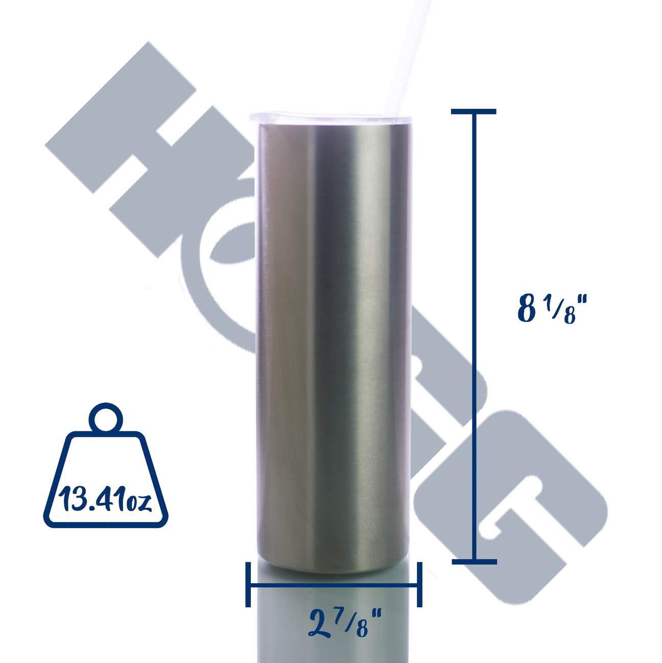 20 oz Skinny Straight Stainless Steel Double Wall Vacuum Sealed. With lid and straw.